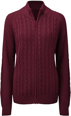 Women's Zipper Cable Knit Sweater Cardigan Long Sleeve Open Front Warm Knit Cardigan Casual Cardigan Knitwear