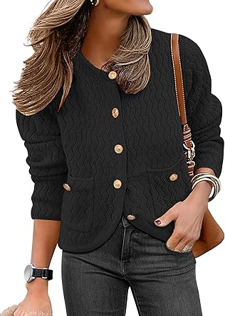 Women's Cropped Cardigan Sweaters Open Front Button Down Knit Lady Jackets Outerwear with Pocktes 2024 Fall Clothes
