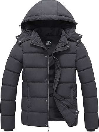 Men's Winter Puffer Jacket Quilted Thicken Down Coat Insulated and Water Repellent Jacket with Hood