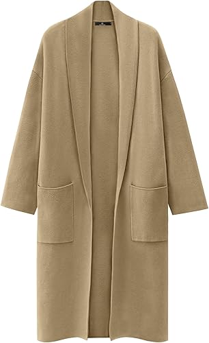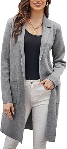 Women's 2024 Fashion Open Front Long Cardigan Sweaters Long Sleeve Lapel knit Sweater Jacket with Pockets