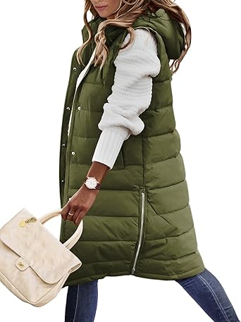 Womens Puffer Vest Winter Hooded Sleeveless Zip Up Long Puffy Jacket Warm Thick Quilted Coats with Pockets