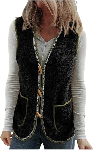 Womens Fleece Vests Winter Fashion Solid Color Loose Jackets Loose Sleeveless Plush Zipper Coat