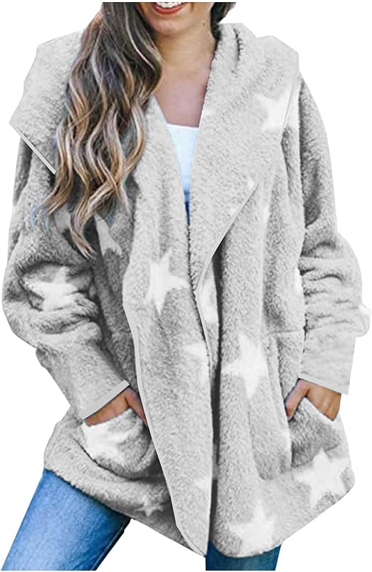 Womens Plaid Shacket Jacket Long Sleeve Button Down Fleece Hooded Jackets Warm Coat