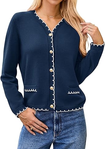 Womens Cardigan Sweaters Contrast Lady Jacket Button Down Trendy Outfits Fall Fashion 2024