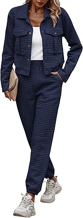 Womens 2024 Winter 2 Piece Outfit Tracksuit Long Sleeve Button Down Shacket Jacket Pockets Long Pants Casual Set
