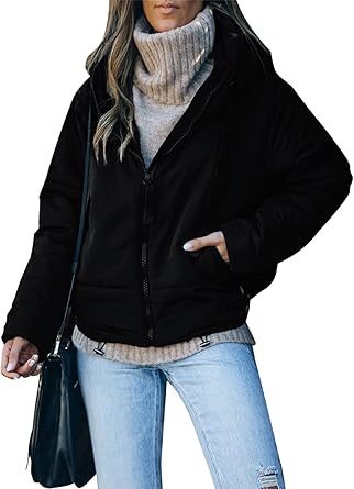 Womens 2024 Winter Full Zipper Hooded Puffer Jacket Short Coat with Pockets