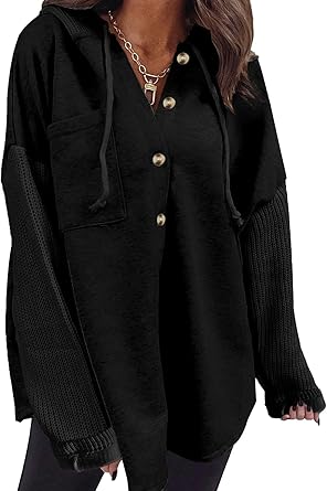 Oversized Sweatshirts for Women Loose Fit Casual Long Sleeve Button Hooded Sweatshirt Hoodie with Pocket