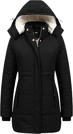 Women's Thicken Sherpa Winter Coat Puffy Warm Snow Jacket With Removable Hood